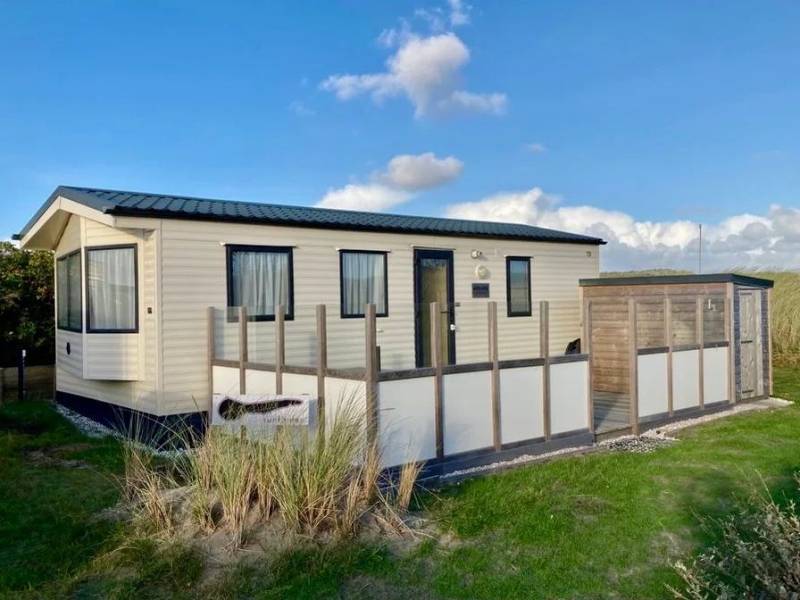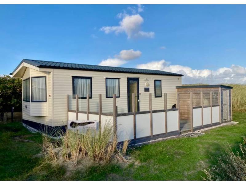 Onze stacaravan "Sunfinder" op plaats 120 staat 100 meter van het strand midden in de duinen op Strandcamping Duinoord te Nes.