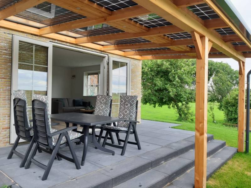 In de badkamer bevindt zich een dubbele regendouche met Sun shower.