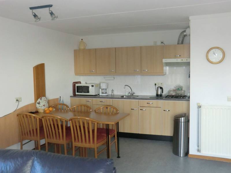 Het appartement bevindt zich op de eerste etage en heeft een balkon op het zuiden. Het complex ligt tussen het dorp Nes en het strand in en kijkt uit op recreatiegebied de Vleijen.